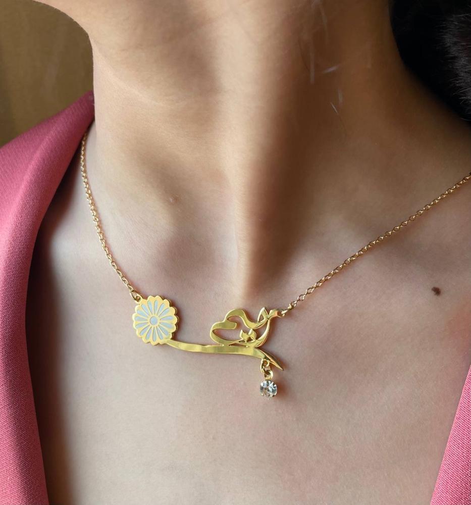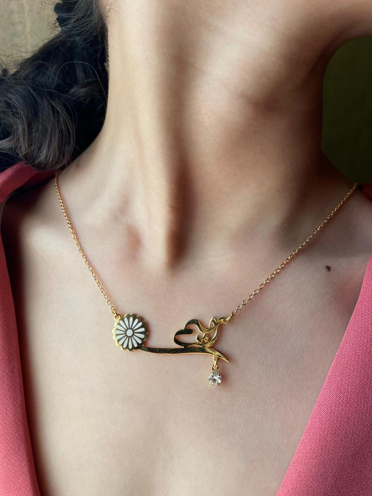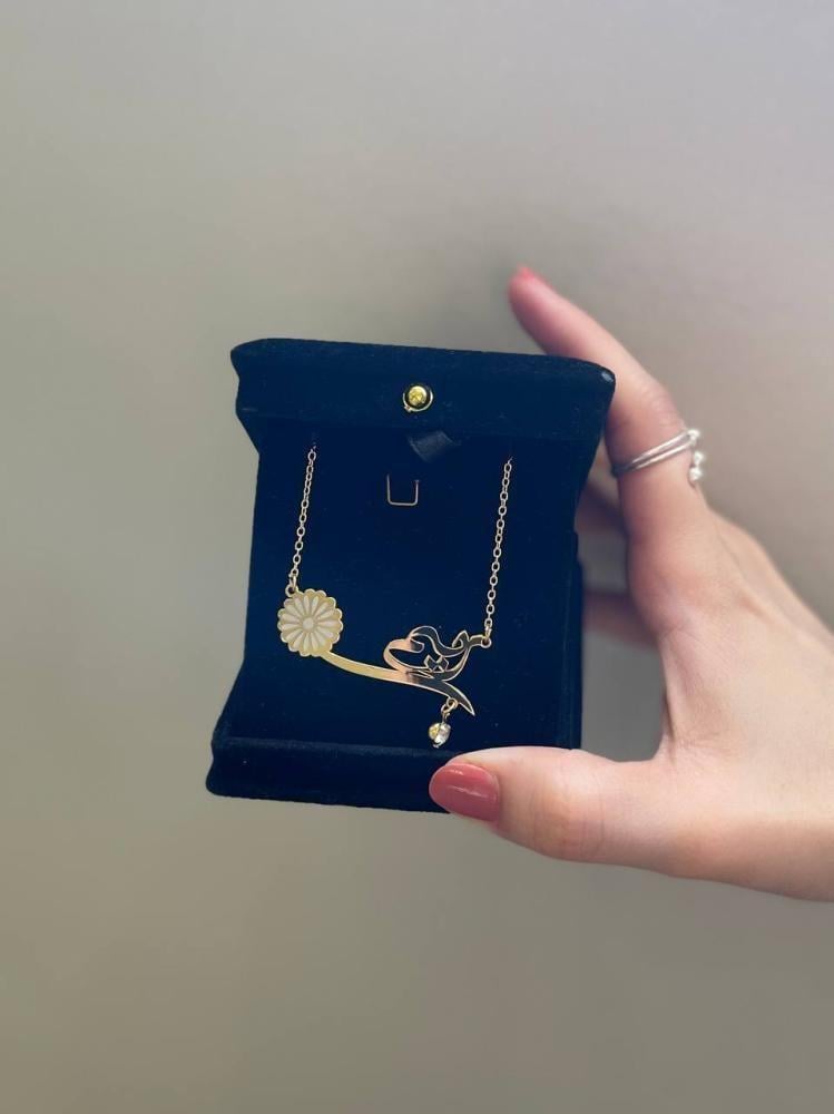 سلسال بالاسم بشكل ورده مع الزركونتفاصيل المنتج:نوفرها بـ طلاء ذهبي او فضي حسب الطلبتصميم الاسم (عربي أو إنجليزي) والشكل حسب الطلبمطلي بالذهب عيار 21 قيراط