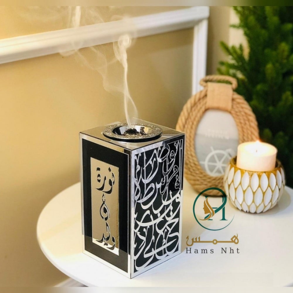 مبخرة المحبهتصميم يجمع بين الحروف العربية و أناقة اللون الفضي.مبخرة المحبه لمسةراقية لديكور منزلك.مصنوعة من الأكريلك الأسوداللامع و الأكريليك الفضي الانيق