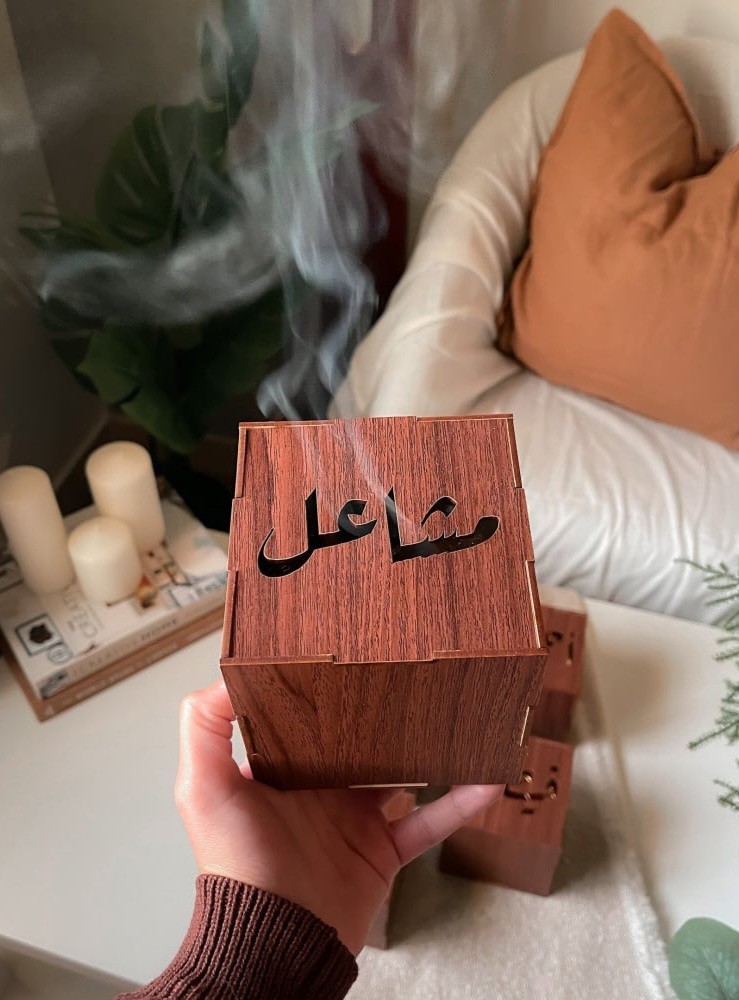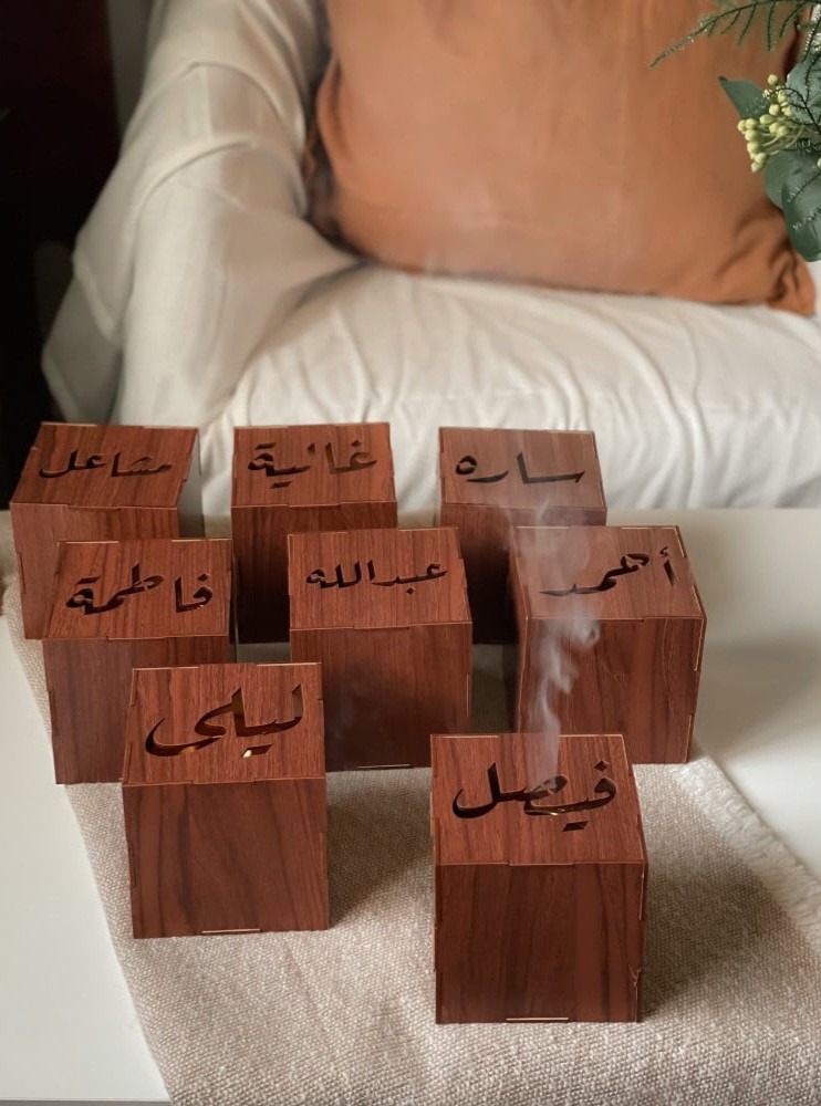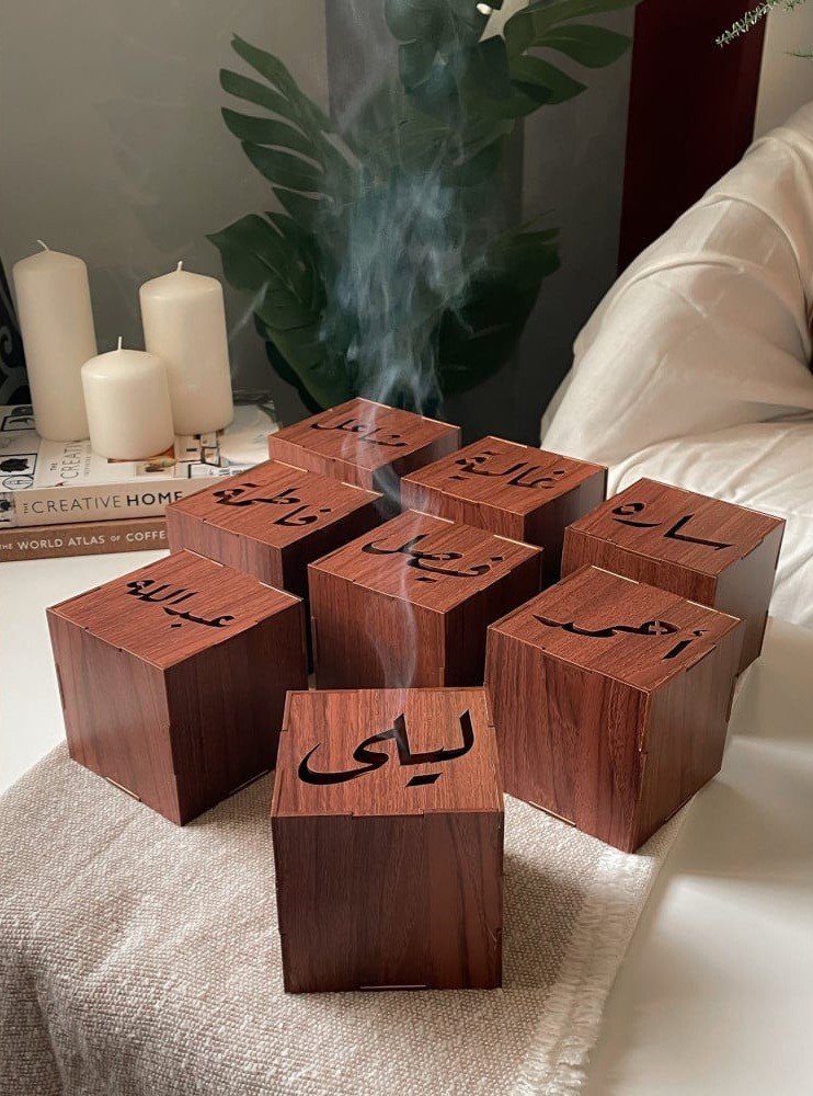 مجموعة تتكون من 8 مباخر خشبية فاخرة يتم نحت الاسم بطريقة مبتكرة لتضيف لمسة خاصة لي منزلك