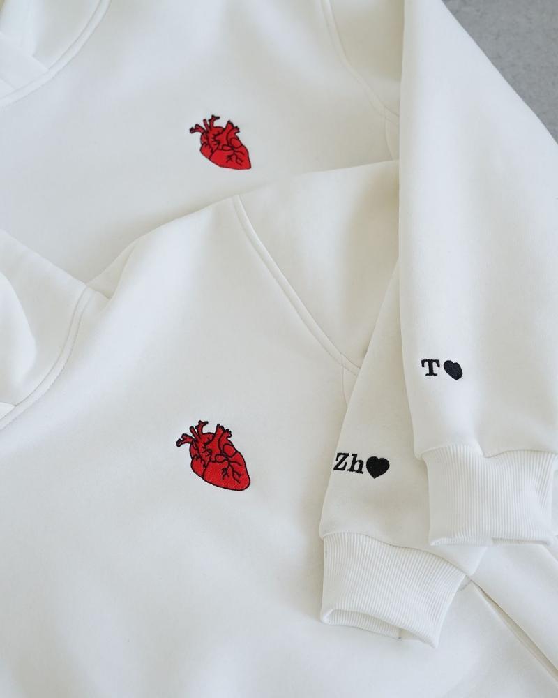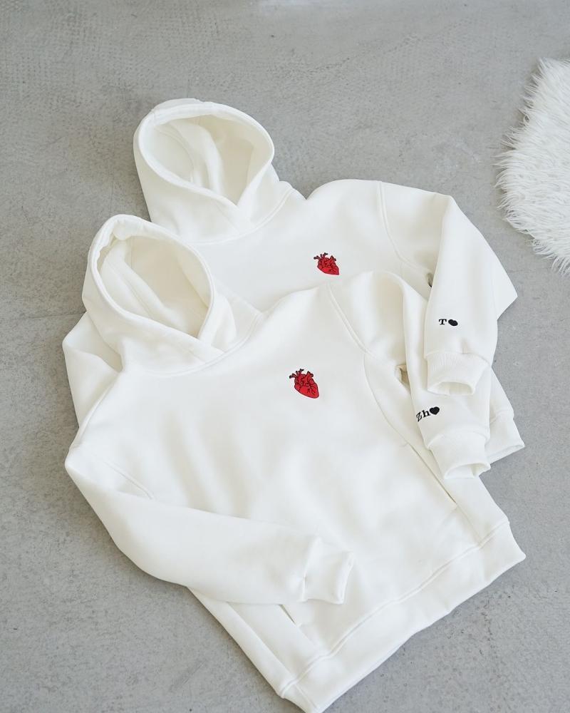 الوصف:أضف لمسة دافئة وأناقة خاصة إلى إطلالتك مع هودي القلب المميز. تصميم قلب طباعه بعناية مع أحرفك المفضلة على الأكمام، ليكون خيارًا فريدًا لك أو هدية تعبّر عن الحب بأسلوب أنيق